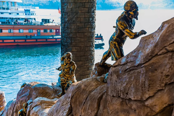 宜昌港九码头作为宜昌市旅游门户和交运*两坝一峡游客的重要起止港,沉淀了丰富的宜昌本土文化和岁月历史。宜昌港九码头文化墙主要以浮雕设计为主。文化墙正面以三峡大坝全景浮雕。巍巍大坝,滔滔江水尽收眼底,坛子岭、升船机、五级船闸纤毫毕现。左手边一一呈现的是白帝城、夔门、巫山神女峰、屈原祠、黄陵庙、三峡人家、三游洞、葛洲坝等景点。右手边则还原了旧时三峡纤夫拉纤场景和峡江吊脚楼旧时风貌。文化墙整体呈现了长江三峡的秀丽风光,再现了历史悠久的峡江文化和码头文化。
