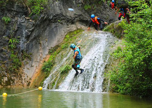 宜昌三峡奇潭溪降位于宜昌市夷陵区黄花乡白洋坪,起于白杨坪村,终于新坪村,全长约15公里,落差约300米,距宜昌城区1个半小时左右车程,是一条典型的溪流峡谷,非常理想的溪降穿越线路。它由4道溪降10来个跳潭和8个冲马桶小瀑组成的溪流,最高跳潭高度约4米,最高瀑降高度约35米,溪降综合难度初级,各种溪降技能基本都会使用到,实为溪降新驴突击训练营。其秀丽的峡谷风貌、清澈的溪流更是让人恋恋不舍!